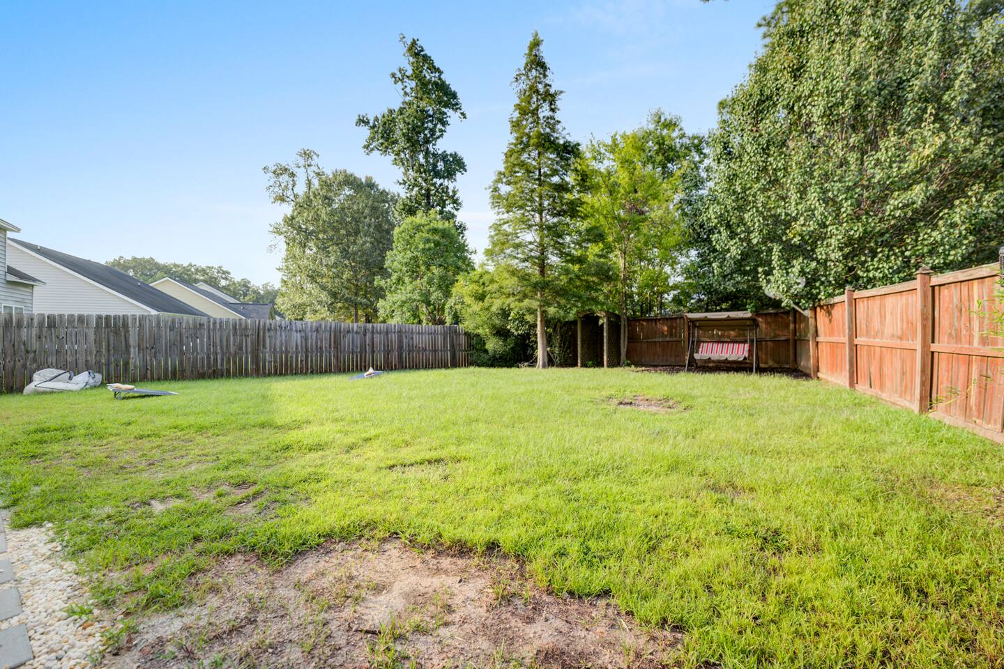 π A note on bugs: We hate bugs too! That's why we have our properties treated regularly by a professional pest company. That being said, when temperatures and moisture levels change, you may see a bug. This is not an indication of cleanliness but a reality of living below sea level in the South. Keeping doors and windows closed properly is a great step to avoid this, and if you see anything you can call us, but seeing A bug will not be grounds for a refund. Please be aware that there is a small pond behind our yard. No swimming is permitted. There is a door in our backyard fence that allows access to that area of the neighborhood. Feel free to explore, but please exercise caution where children are concerned and always close the gate. City of North Charleston Short-Term Rental Permit 2025-0316