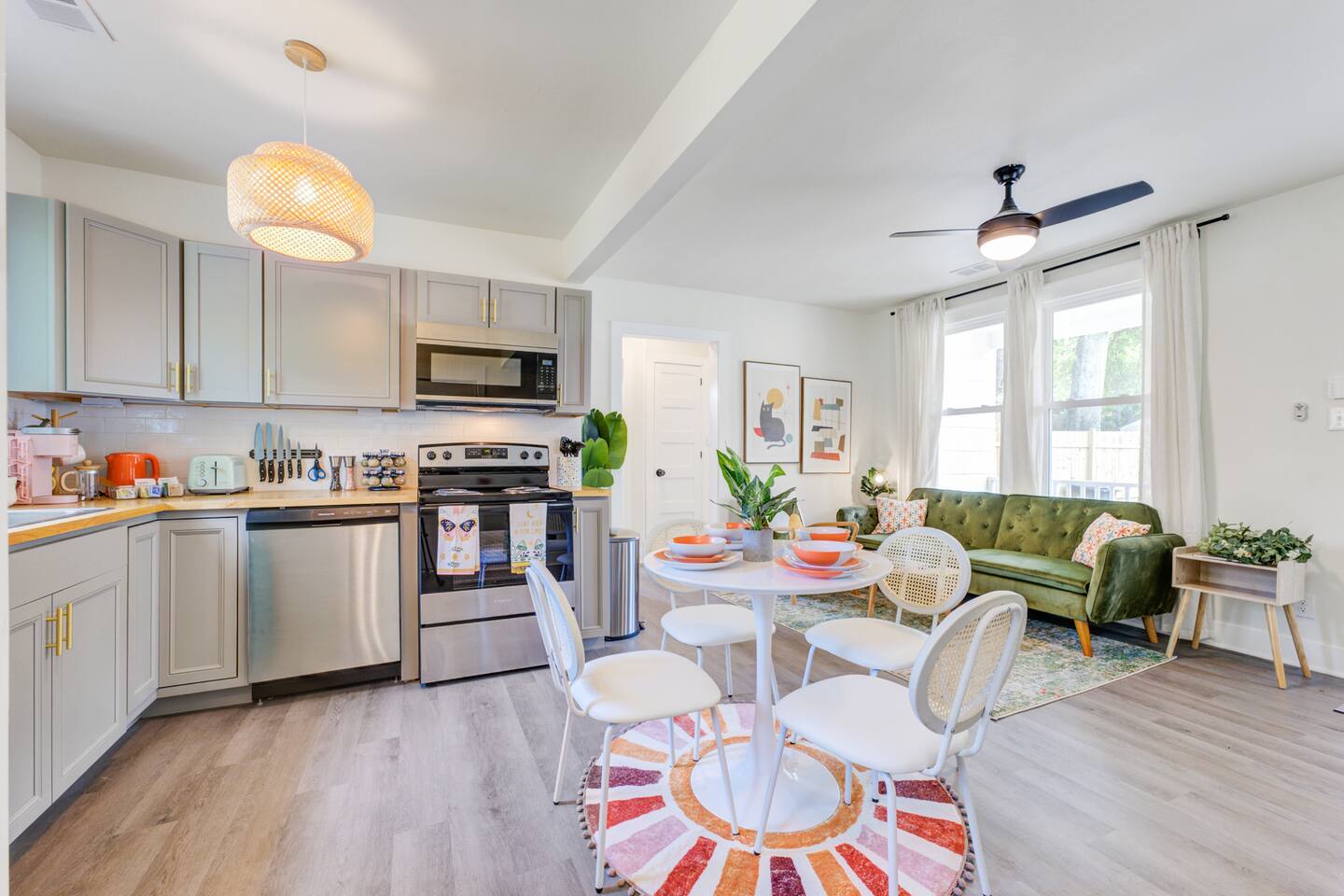 This 664 square foot two bedroom house has everything you need for a great stay. 🧳 early luggage drop off* 🐶 pet friendly* 🧽 $0 cleaning fee + professionally cleaned 🚫 chore-less check out instructions 🕔 early check in when possible* 🍽️ fully functional kitchen 🌳 huge fenced yard + cute outdoor seating City of North Charleston Short-Term Rental Permit 2025-0170 *Fees apply. ⛈️Hurricane Season Pro Tip: Purchase traveler's insurance! Storms are unpredictable and may affect travel. Official Atlantic Hurricane Season begins each year on June 1 and ends on November 30.