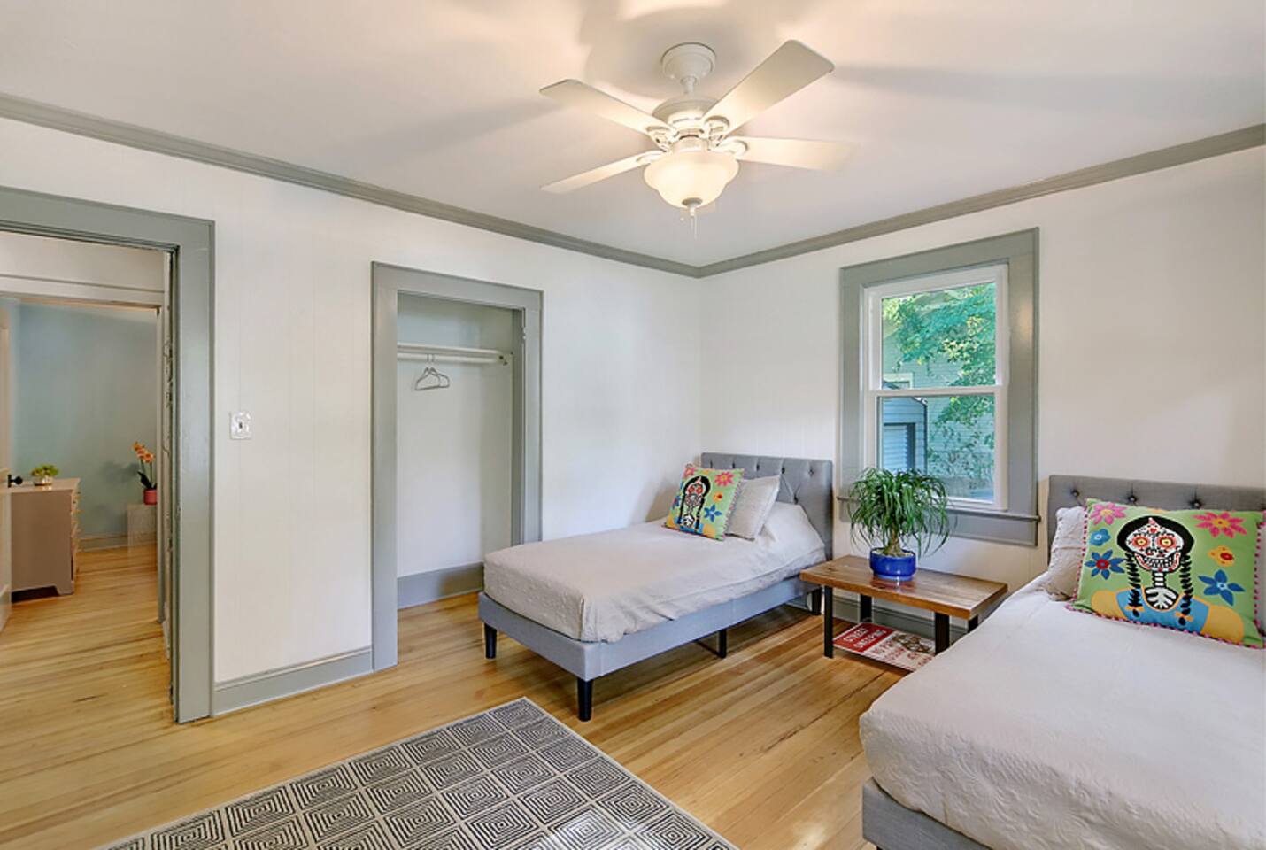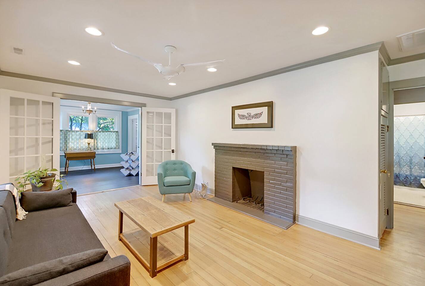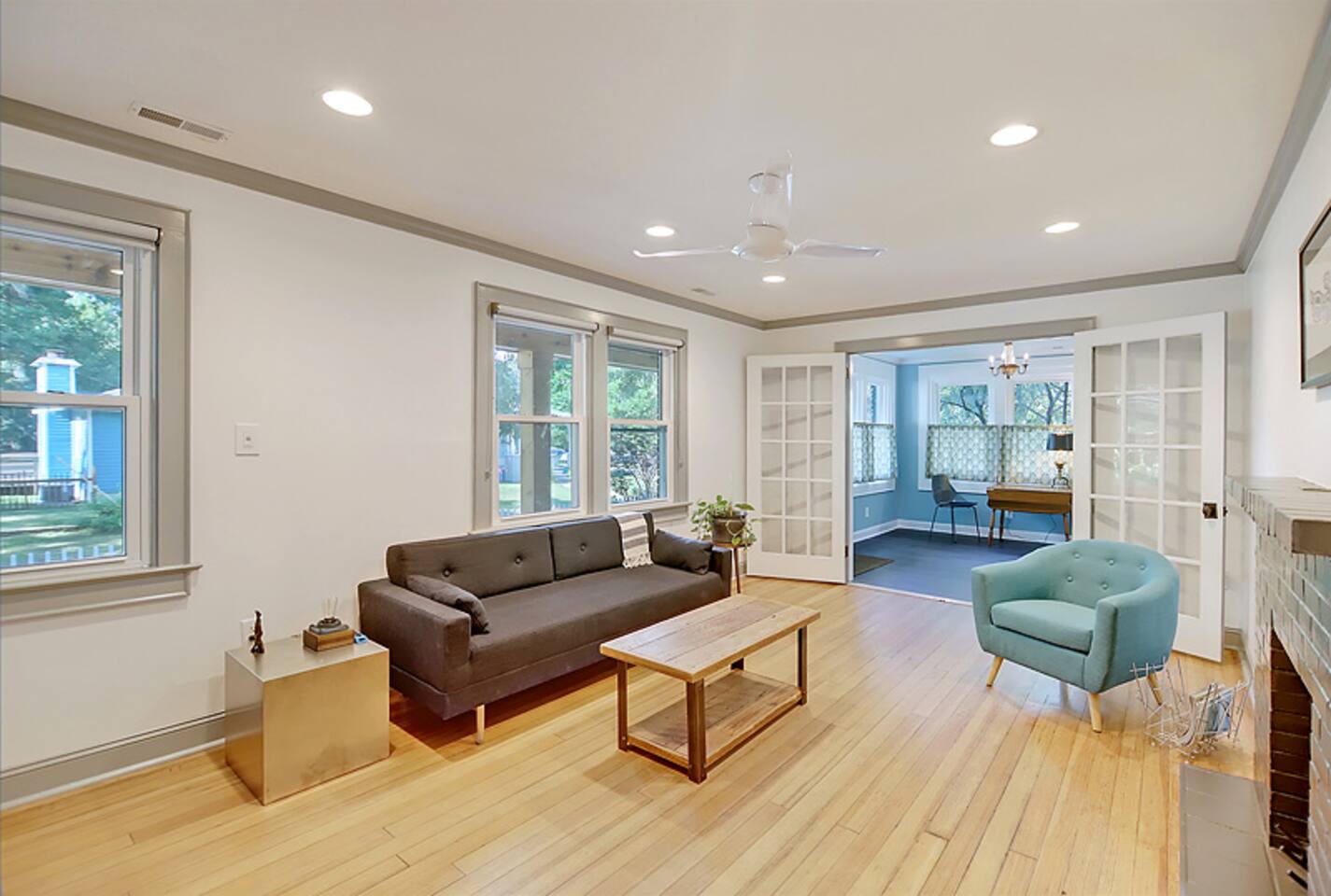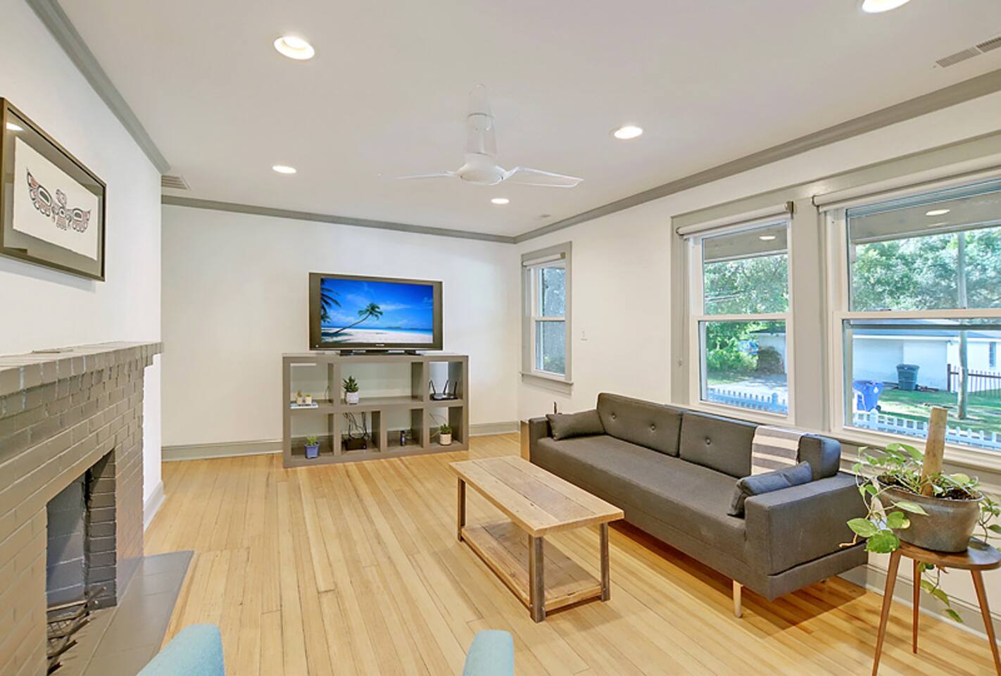 This newly renovated home is full of charm & modern touches — and sleeps up to 8 guests comfortably! 🔐 Easy Access & Safety Keypad entry (no keys to keep up with!) Ring doorbell for peace of mind 🍽️ Fully stocked & totally remodeled kitchen w/ 32” TV! ☕ Keurig (pods + grounds!), oatmeal 🥣, grits, & spices 🌿 🧼 Dishwasher + tabs included 👕 Washer/dryer with detergent & dryer sheets provided 🛏️ This home features 3 cozy bedrooms, each with brand new mattresses for a great night's sleep! Bedroom 1: queen Bedroom 2: queen Bedroom 3: 2 twins 🚿 The primary bedroom includes a private en-suite bathroom and a handy convertible standing desk for remote work. 🛁 A second full bathroom is conveniently located between the other two bedrooms. 🧼 We provide fresh towels, crisp linens, and everything you need to feel at home. 🛋️ Relax in Style: Restored hardwood floors Smart TVs USB-C & Lightning charging stations Comfy sleeper sofa (let us know if you need sheets!) Included extras: 🌞 Fenced-in yard + private back deck 🔥Firepit w/ 1 starter log per night 🍹Chill front porch for morning coffee or sunset cocktails 🚗Private driveway + easy street parking