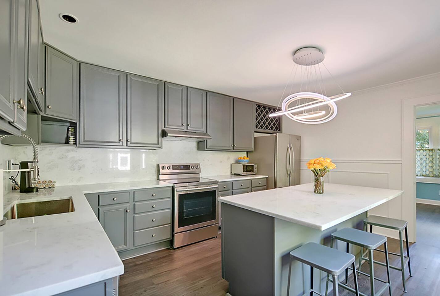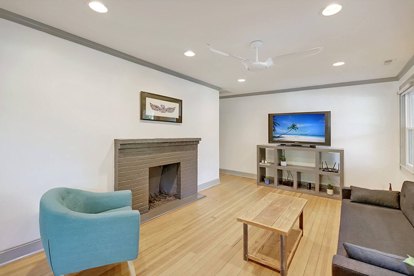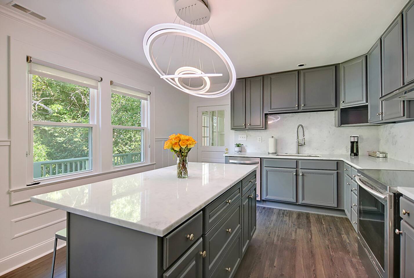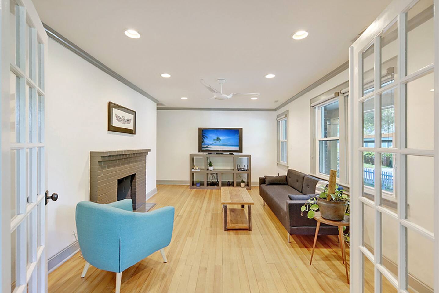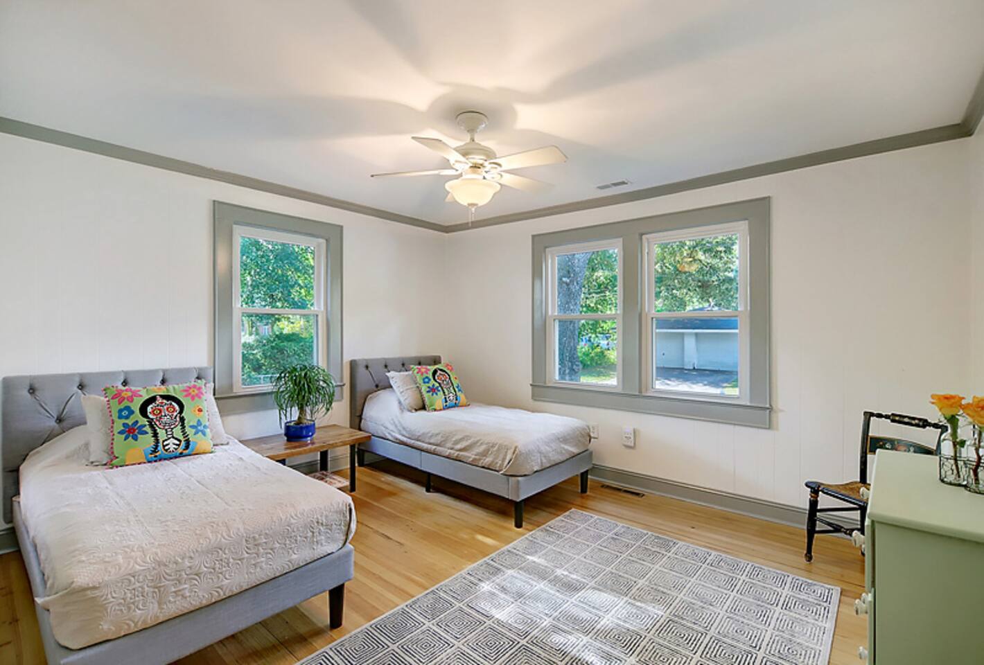This newly renovated home is full of charm & modern touches — and sleeps up to 8 guests comfortably! 🔐 Easy Access & Safety Keypad entry (no keys to keep up with!) Ring doorbell for peace of mind 🍽️ Fully stocked & totally remodeled kitchen w/ 32” TV! ☕ Keurig (pods + grounds!), oatmeal 🥣, grits, & spices 🌿 🧼 Dishwasher + tabs included 👕 Washer/dryer with detergent & dryer sheets provided 🛏️ This home features 3 cozy bedrooms, each with brand new mattresses for a great night's sleep! Bedroom 1: queen Bedroom 2: queen Bedroom 3: 2 twins 🚿 The primary bedroom includes a private en-suite bathroom and a handy convertible standing desk for remote work. 🛁 A second full bathroom is conveniently located between the other two bedrooms. 🧼 We provide fresh towels, crisp linens, and everything you need to feel at home. 🛋️ Relax in Style: Restored hardwood floors Smart TVs USB-C & Lightning charging stations Comfy sleeper sofa (let us know if you need sheets!) Included extras: 🌞 Fenced-in yard + private back deck 🔥Firepit w/ 1 starter log per night 🍹Chill front porch for morning coffee or sunset cocktails 🚗Private driveway + easy street parking