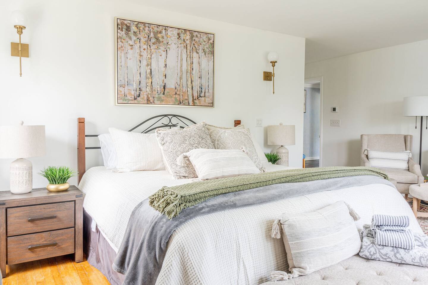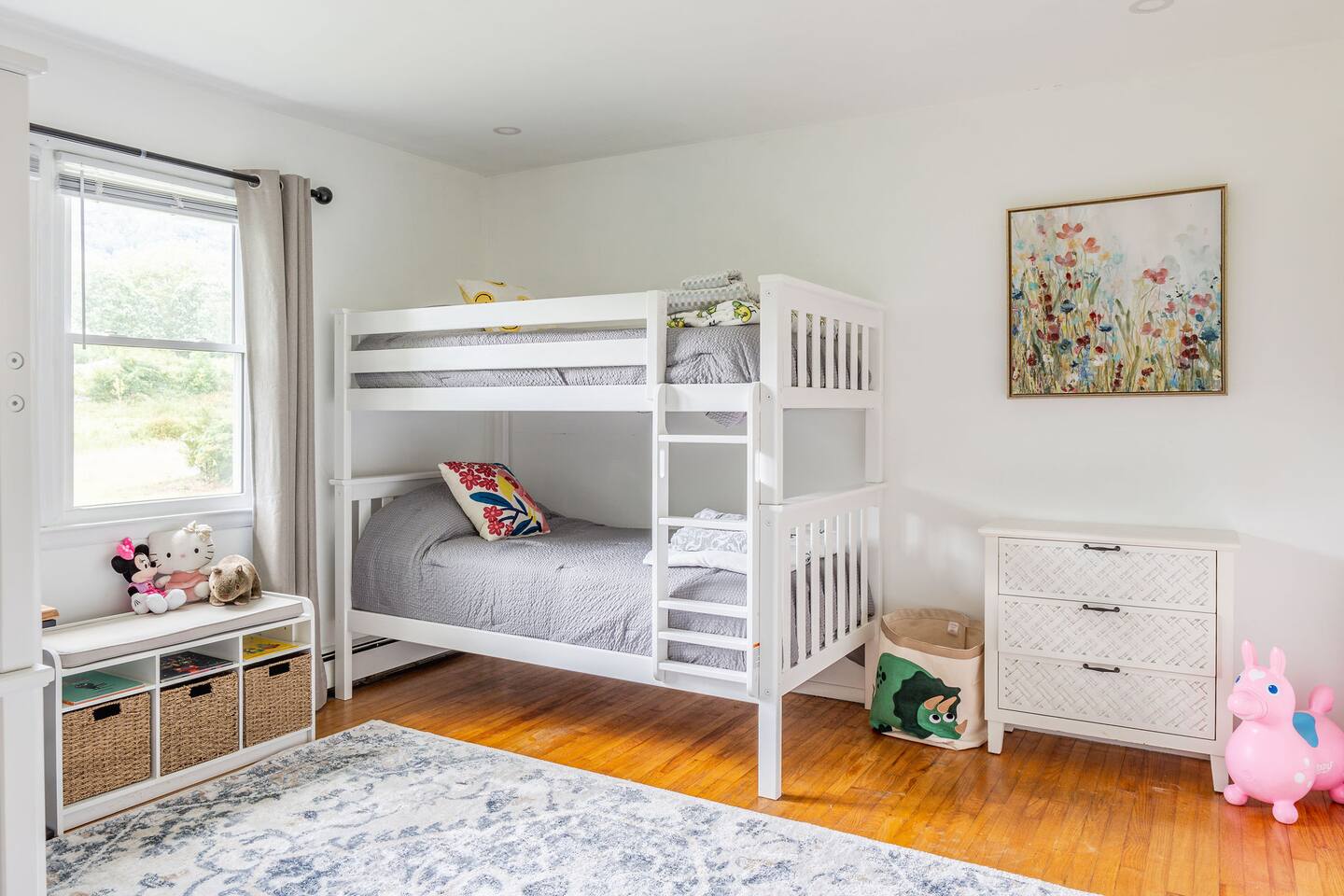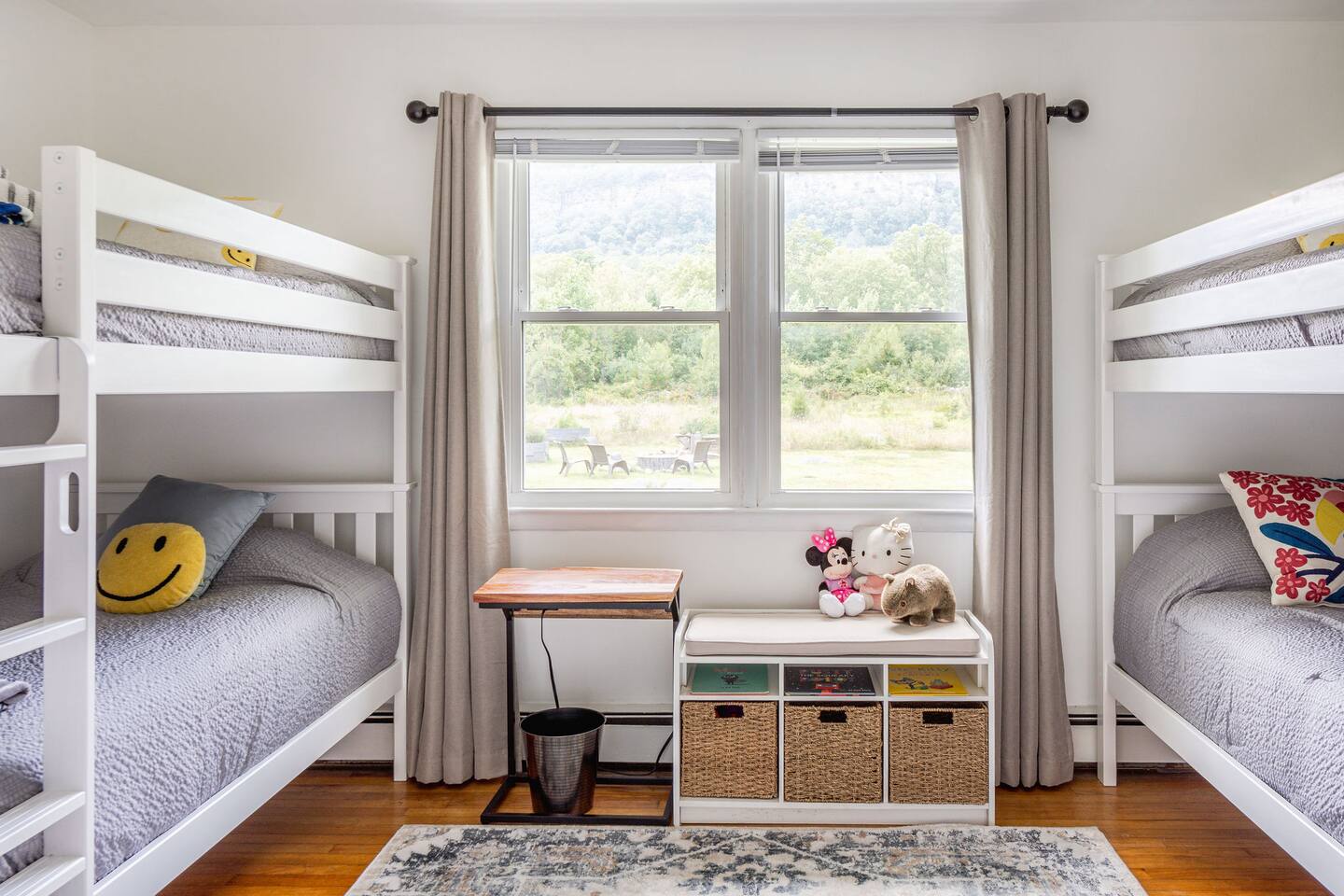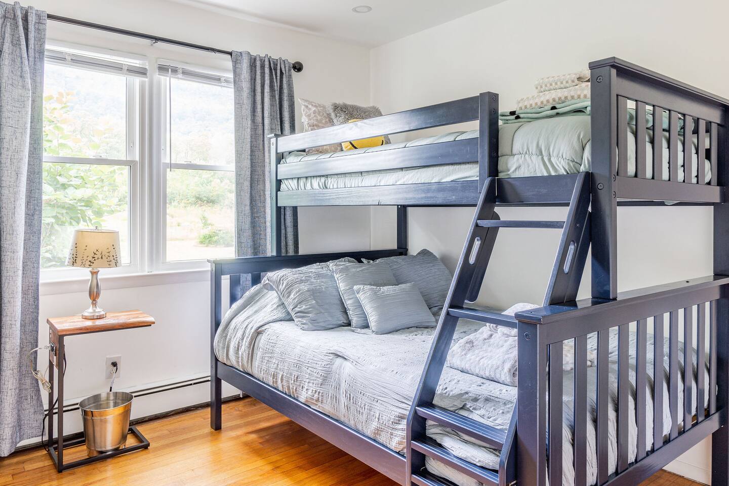 A Spacious, Welcoming Retreat for Big Groups & Families ~ 2,586 sq ft of living space (plus an awesome basement gym!) Bring everyone together and make lasting memories at this bright, open-concept home—perfect for reunions, family getaways, and group trips. With room for up to 15 guests, you’ll enjoy plenty of space both indoors and out, plus a fun bonus: a cozy Airstream camper right next door! 🚐 Recently remodeled yet full of charm, the property offers: 🛏️ 4 comfortable bedrooms + Airstream (8 beds in the house, 2 in the camper) 🛁 2.5 bathrooms 🌳 5 private acres to roam, explore, and unwind Sleep Setup (Something for Everyone!) • Bedroom 1: King bed • Bedroom 2: Double bunk beds • Bedroom 3: Full/Twin bunk combo • Bedroom 4: Queen bed • Common area: Futon that folds into a twin • Airstream camper: Queen bed + a twin convertible seat ♿ Accessibility: The house is all on one floor, but please note there are several steps to enter via the front porch and a few steps down from the deck to the backyard.